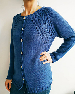 een raglan mouw met een mooie kabeldecoratie. Het wordt gebreid op