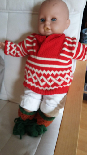 Dan zijn er dit jaar nog van mijn pennen gerold: 1 paar vingerloze handschoentjes, en van het zelfde garen ook nog 2 paar sokken maatje 42. Tja dat is altijd meer doorbreien dan sokken voor de dochter (in het paars, maatje 36)